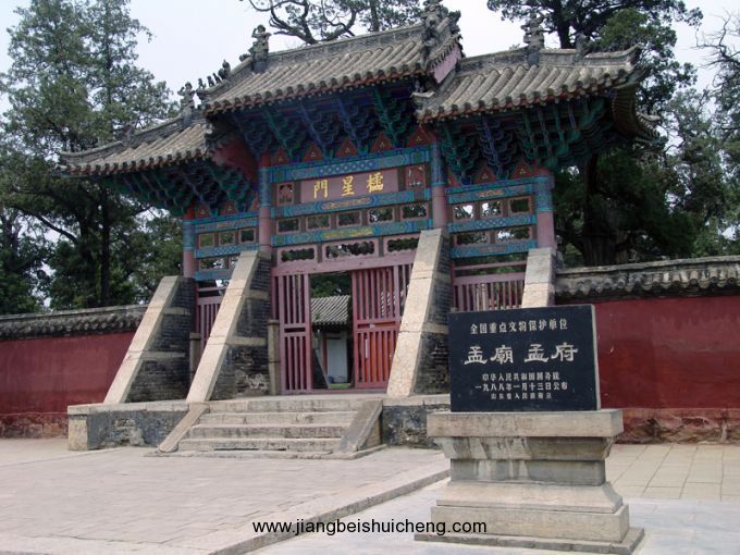 孟府是孟子嫡系后裔居住的府第。建于元至順二年(1331年),元仁宗皇帝封孟子為“鄒國亞圣公”,從此,這里就被稱為“亞圣府”。孟府是一座典型的中國貴族府第,占地面積約2.24萬平方米。以主體建筑大堂為界,前為官衙,后為內(nèi)宅。整體布局大方氣派,典雅中透著幾分威嚴。孟府內(nèi)現(xiàn)在還保存著封建帝王所賜的朝服、龍袍、圣旨、誥封、家族檔案、印書木刻和書籍字畫等大量珍貴文物,為研究中國封建社會的歷史,提供了寶貴的資料。