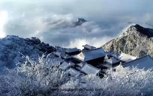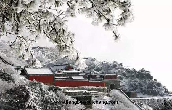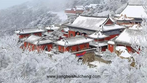 一場雪落,萬籟俱靜。遠方山黛,近處墻紅,廟檐堆雪,樹掛霧凇。這一派景象甚是恢弘!
