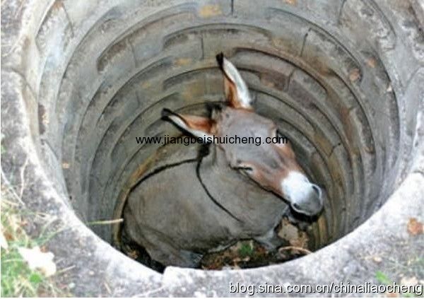 有一頭驢,掉到了一個(gè)很深很深的廢棄的陷阱里。主人權(quán)衡一下,認(rèn)為救它上來不劃算,走了。只留下它孤零零的自己。每天,還有人往陷阱里面倒垃圾,驢很生氣:自己真倒霉,掉到了陷阱里,主人不要他了,就連死也不讓他死得舒服點(diǎn),每天還有那么多垃圾扔在他旁邊。