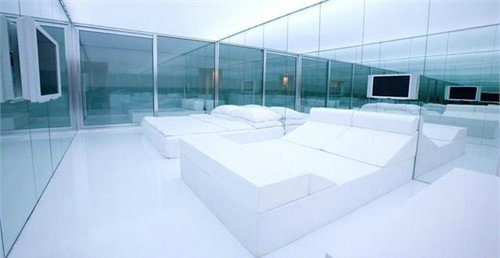 位于土耳其Antalya省的Adam &Eve Hotel(亞當(dāng)和夏娃酒店),被歐洲導(dǎo)游稱做“全世界最性感的旅館”。土耳其的設(shè)計(jì)師Eren Talu利用簡(jiǎn)單而柔和、充滿光澤的材料,并透過(guò)有色鏡子及隱藏的吸音系統(tǒng)營(yíng)造出讓人目眩神馳的效果。