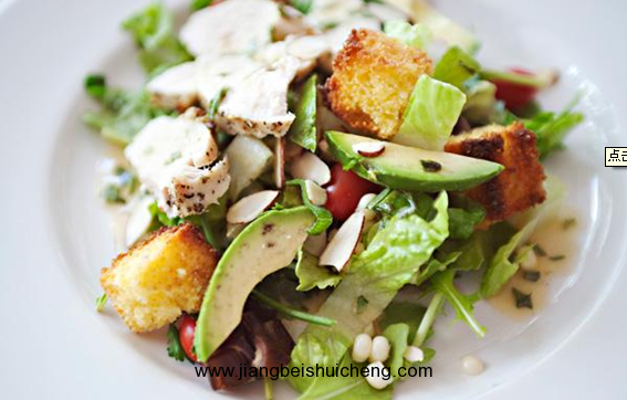 沙拉是用各種涼透了的熟料或是可以直接食用的生料加工成較小的形狀后,再加入調(diào)味品或澆上各種冷少司或冷調(diào)味汁拌制而成的。沙拉的原料選擇范圍很廣,各種蔬菜、水果、海鮮、禽蛋、肉類等均可用于沙拉的制作。但要求原料新鮮細嫩,符合衛(wèi)生要求。沙拉大都具有色澤鮮艷、外形美觀、鮮嫩爽口、解膩開胃的特點。有時候也將拌制沙拉的各種沙司醬、調(diào)味汁稱作沙拉。沙拉清淡爽口,是炎熱夏季晚餐不錯的選擇,健康方便簡單的同時又能保證足夠營養(yǎng)元素的攝入。這個夏天,你是否和沙拉也有一個約定?