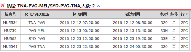 (請(qǐng)客人于2016年12月12日上午05:00在濟(jì)南機(jī)場(chǎng)內(nèi)自行乘坐國(guó)內(nèi)段航班前往上海浦東機(jī)場(chǎng),請(qǐng)客人務(wù)必?cái)y帶護(hù)照復(fù)印件、身份證原件和機(jī)票行程單自行辦理飛往上海的航班的登機(jī)手續(xù)。 因個(gè)人原因?qū)е逻t到不能辦理登機(jī)牌,責(zé)任自負(fù)。 去程聯(lián)運(yùn)請(qǐng)務(wù)必乘坐,否則全程機(jī)票取消,后果請(qǐng)客人自負(fù)。 |