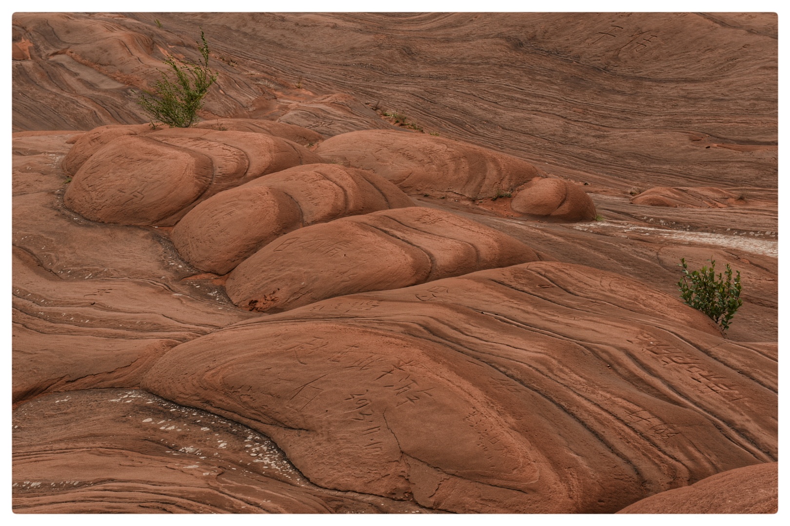 靖邊"波浪谷"這一名稱是來這里的攝影者給予的,它與亞利桑那州的波浪谷是有一定區(qū)別,亞利桑那州的波浪谷在紅色之間夾有白色線條,紅白相間;而靖邊的波浪谷則以紅色為主。