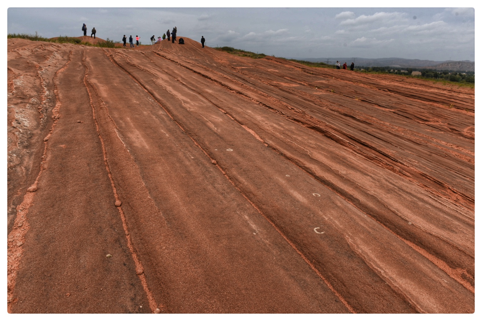 在陜北高原的靖邊,有一個(gè)從未被外人發(fā)現(xiàn)的處女風(fēng)光地,它堪與美國西部波浪谷媲美,綿延幾公里的丹霞地貌景觀,被當(dāng)?shù)厝朔Q為“紅沙峁”。經(jīng)過一億五千年的風(fēng)沙洗禮,地下的巖石形成孤立的山峰和陡峭的奇巖怪石,巨厚紅色砂、礫巖層中沿垂直節(jié)理發(fā)育的各種丹霞奇峰購成了一副絕美的奇景。
