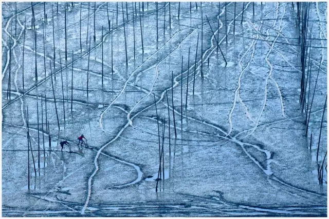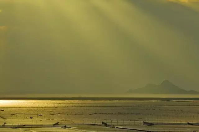 霞浦灘涂上以大面積的灰色為主,上面用于養(yǎng)殖的竹竿反光極為強烈,為了突出光影的效果,這些反光只能駕馭無法消除??梢钥紤]拍攝減少曝光量來進行控制畫面的主體明度,達到增強光影效果的目的。選擇日落日出時段拍攝,化不利為有利。此時竹竿上的光比小,色溫暖,竹竿被夕陽染成了金色,為灘涂風光造景造勢。曝光控制值要講究,如果對高光部位正確曝光,舍去暗部的細節(jié),得考慮到灘涂的竹竿在遠處成像后非常細小,即使使用相機的點測光也無法測出高光部分的亮度,那 么只能使用評價測光來測量。曝光補償上減少2檔曝光。