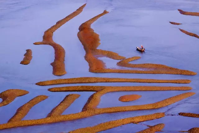 霞浦灘涂的虎皮般的紋路是由灘涂中沙粒和泥漿組成,潮水才退下時含有水分較多此時能反光,需要刻畫虎皮紋路鼓起的紋路,就得選擇光線低位的早晚拍攝,此時 的虎皮紋陰陽交錯,紋路格外明顯。