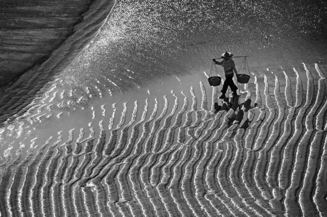去霞浦拍攝時,不一定會遇到好的天氣,遇到陰天時是不是就不拍照了呢? 陰天依然可以捕捉灘涂美景,不過需要把拍攝模式轉(zhuǎn)為黑白,主要表現(xiàn)灘涂中的漁網(wǎng)漁船等物體的線條,與海水形成黑白剪影的效果。