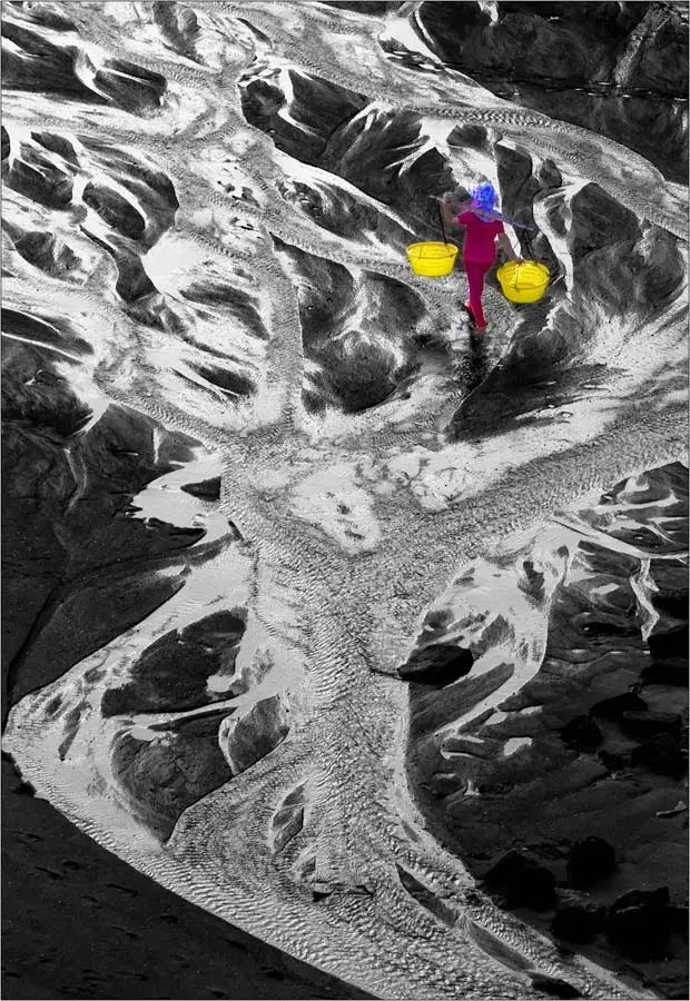 四、盡管拍攝霞浦灘涂各個焦段的鏡頭都能用上,但是拍得好的必然是擅于運用長焦鏡頭的人,灘涂變化的復(fù)雜性決定了只有長鏡頭才能有可能在這一小片灘涂上做出一大篇“文章”來。