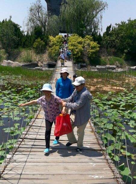 老人家慢慢走,不要慌,大家都在前面呢