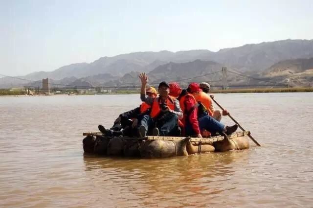 黃河上的非物質(zhì)文化遺產(chǎn)——羊皮筏子漂流。羊皮筏子也只在比較淺的水域行駛,因此坐筏子的感覺也少了些驚心動(dòng)魄。坐在筏子上,低頭就能看見黃河水從羊皮胎的空當(dāng)中悠悠穿過,向下一伸手穿過木架子就能撩到?jīng)鰶龅暮铀?,更奇妙的是筏子隨著水波蕩漾晃晃悠悠,乘客卻不會(huì)被水打濕,有點(diǎn)“我自端坐,任他風(fēng)浪”的味道。
