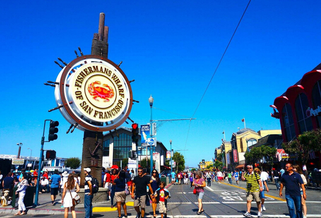 文化課程:舊金山文化考察——金門大橋、漁人碼頭,九曲花街 (金門大橋是世界著名大橋之一,被譽為近代橋梁工程的一項奇跡,也被認(rèn)為是舊金山的象征。)