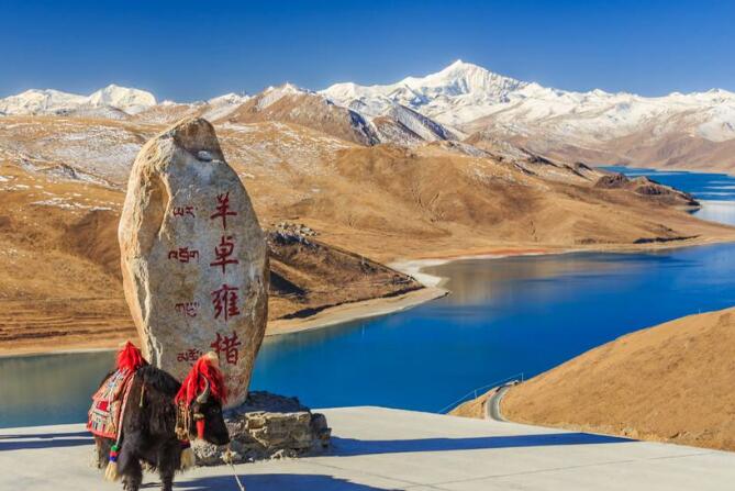 早餐后出發(fā),過(guò)國(guó)家級(jí)風(fēng)景名勝區(qū)——雅礱風(fēng)景名勝區(qū),觀雅魯藏布江最寬處——海闊天空觀景臺(tái)觀河景、沙洲。翻越海拔4990米的岡巴拉神山,就抵達(dá)是世界上最高的淡水湖、有天上圣湖之美譽(yù)的【羊卓雍措】(湖面海拔4441米。藏語(yǔ)為“天鵝湖”),是西藏三大圣湖之一的淡水湖,湖水如羊脂般清澈。湖西是后藏地區(qū)最重要的神山——寧金抗桑峰。沿著羊湖邊前行,湛藍(lán)的湖水遠(yuǎn)方的雪山連為一體,加上兩岸各色的山脈、極具特色的藏民族村落、遍地的牛羊,一路走來(lái),心曠神怡。參觀人類最容易接近的冰川——【卡諾拉冰川】;在陽(yáng)光的照耀下熠熠生輝、驚為天上之湖的曼拉水庫(kù),路過(guò)江孜英雄城,最后抵達(dá)山東對(duì)口援建的后藏重鎮(zhèn)——日喀則。