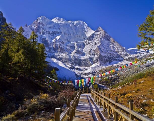 當天游覽線路參考:日瓦鄉(xiāng)~景區(qū)觀光車34km~亞丁村龍同壩~景區(qū)觀光車3.4km~扎灌崩~徒步0.5km~沖古寺~電瓶車6.7km~絡絨牛場(三怙主雪山)~騎馬5.3km~牛奶海、五色海。(原路返回亞丁村龍同壩)