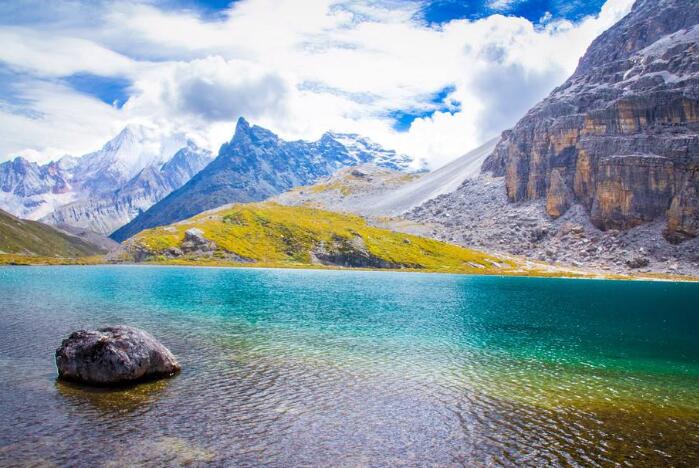 早餐后可以繼續(xù)進入景區(qū)觀賞【仙乃日神山】下的圣湖【卓瑪拉措】又名珍珠海(二進溝乘坐觀光車60元費用自理)。到達景區(qū)后步行到達沿著【沖古寺】仰望仙乃日神山而上(往返約3公里步行約2小時)欣賞沿途的美景,遠眺仙乃日神山(海拔6032米,慈目注視腳下人間仙境,夏天雪線下瀑布成群連片,氣勢宏偉壯觀,山腳下分布著由草地、森林、湖泊完美組合的景致,美不勝收。仙乃日,藏語意為“觀世音菩薩”,是稻城三座神山的北峰。是三座神山中海拔最高的一座。其狀巍峨,象菩薩端坐在蓮花臺上,渾身浸透高貴氣質(zhì)的“仙乃日”,頂峰終年積雪不化,其山形酷似一個身體后仰的大佛,傲然端坐在蓮花座里,她的懷中抱著一個巨大的佛塔,陽光照在仙乃日神山上會金光燦燦。一步一步來到美如仙境般的珍珠海,藏語中稱珍珠海譯為“卓瑪拉措”密林中的珍珠海如一顆鑲嵌在蓮花寶座上的綠寶石,碧波蕩漾,雪山和樹木的倒影一起倒映在碧綠的珍珠海中。組成一幅仙境般的圖畫,不是人間,勝似人間。