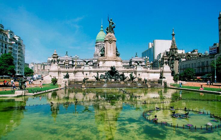 早餐后,游覽布宜諾斯艾利斯北區(qū),驅(qū)車經(jīng)過Lopez、 Olivos和總統(tǒng)官邸,沿岸欣賞高級(jí)住宅區(qū)秀麗景觀。隨后至老虎洲,搭乘游艇暢游巴拉那河,感受優(yōu)美的自然景觀,觀賞兩岸旖旎風(fēng)光。它是由巴拉那河和烏拉圭河流入阿根廷境內(nèi)的銀河而形成的三角洲區(qū)域,生態(tài)保護(hù)嚴(yán)格,生態(tài)環(huán)境良好,被譽(yù)為“南美威尼斯”。隨后參觀五月廣場、有粉紅宮之稱的總統(tǒng)府、都會(huì)主教堂、國會(huì)大廈、路經(jīng)世界最寬的七九大道和獨(dú)立紀(jì)念碑。