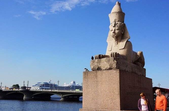 【獅身人面像雕塑】(參觀約10分鐘)這對獅身人面像是15世紀(jì)從埃及出土的文物,由俄羅斯政府購買并運(yùn)回圣彼得堡擺放在了涅瓦河畔。
