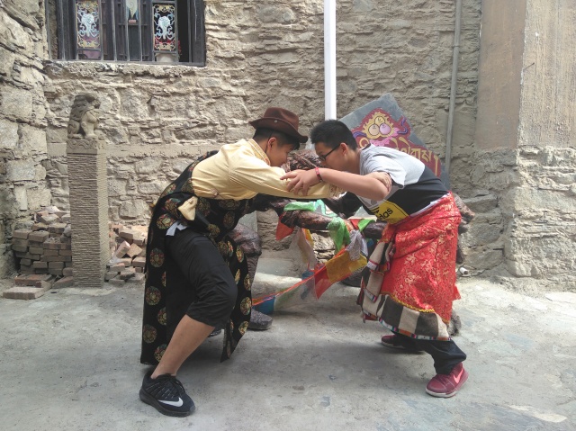 在甘堡藏寨的點將臺,感受到當年出征的那種豪情壯志。震天的鼓聲,迅速的集合,豪情的口號,武士勛章的配發(fā),獻禮哈達,我們即將掛帥出征啦!