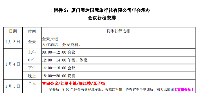 2、會議時間:2019 年 1 月 3 日→6 日。其中 3 號報到,4 號年會會議,5、6、號(6 號下午 5 點結束行程考察,不含 6 號晚餐及 6 號晚住宿)古田會議經(jīng)典路線考察(含古田會址、中復村、松毛嶺等)。