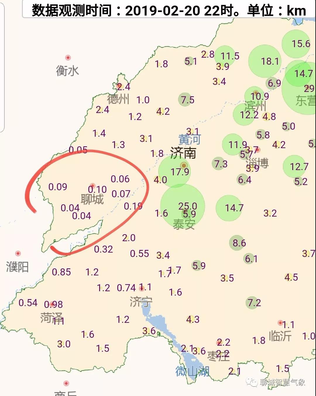 圖三:20日22時(shí)能見度數(shù)據(jù)顯示:我市能見度當(dāng)前為全省最低