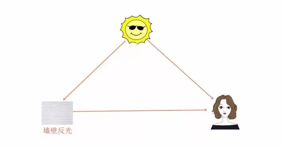 但多數(shù)人是沒有這些專業(yè)設(shè)備的,這時(shí)候,就可以利用周圍環(huán)境,來給模特臉部補(bǔ)光了,例如白色墻面的反光。