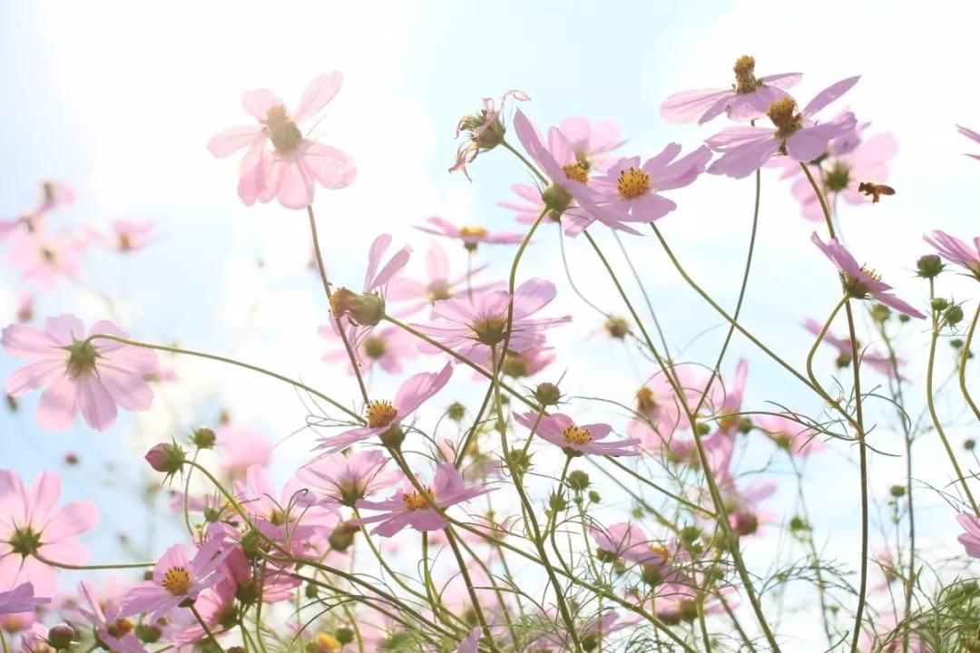 低矮的花,也是可以仰拍的,像這種比較稀疏又很小的花,蹲下來(lái)仰拍是最好不過(guò)的了。