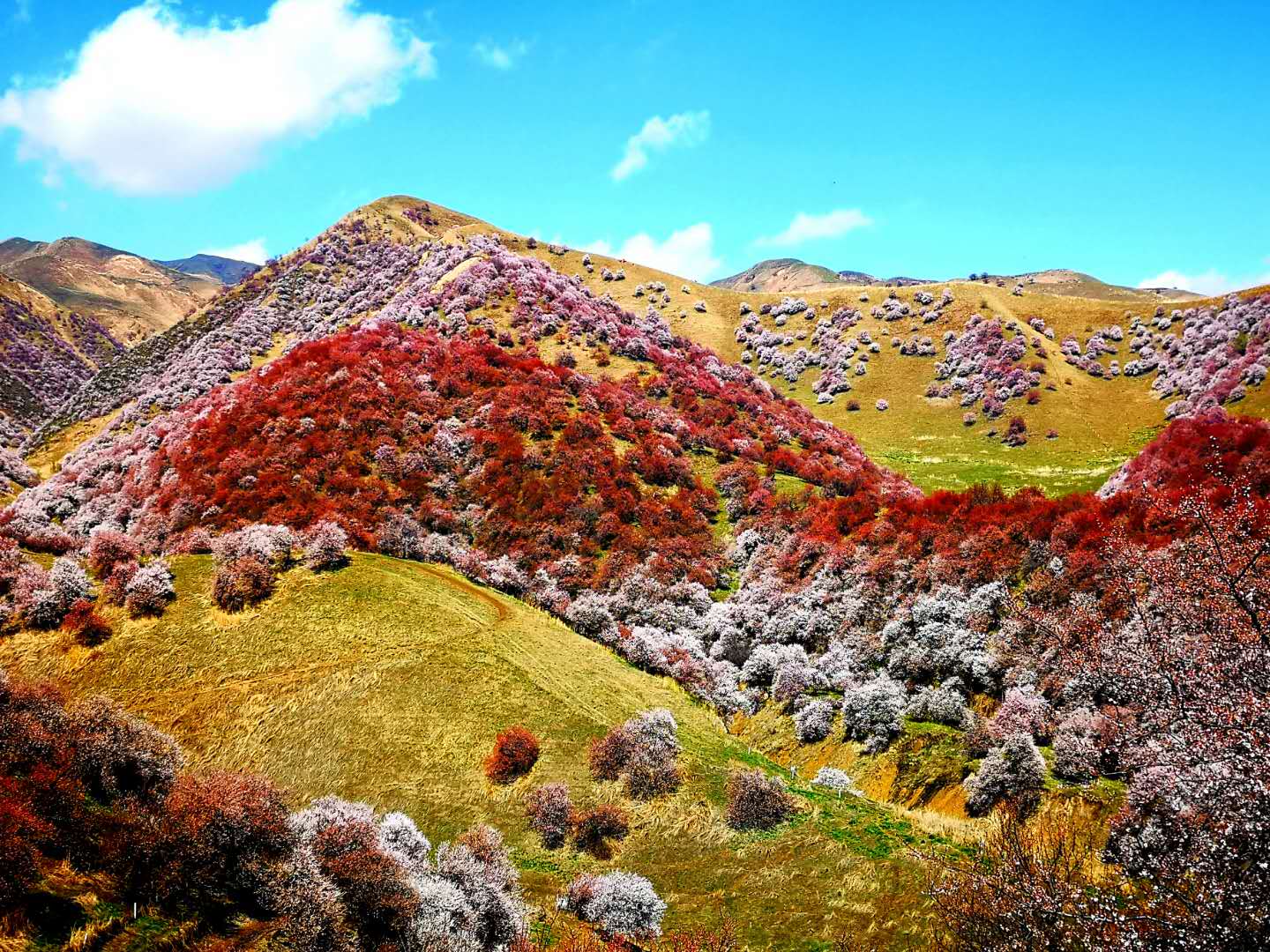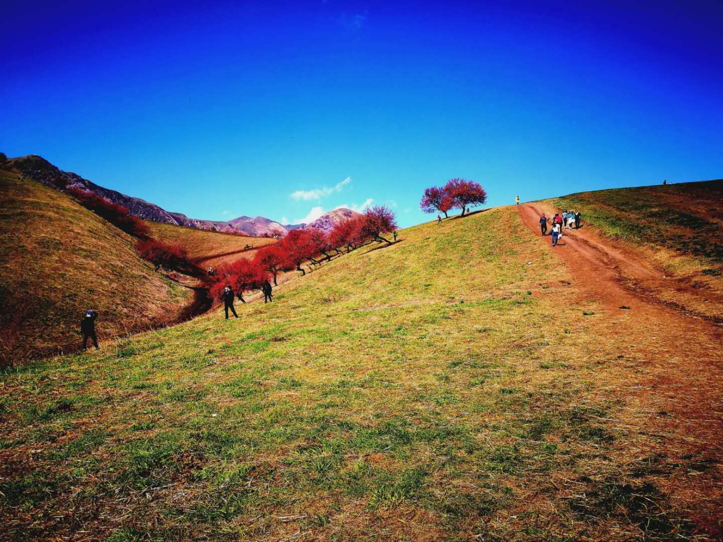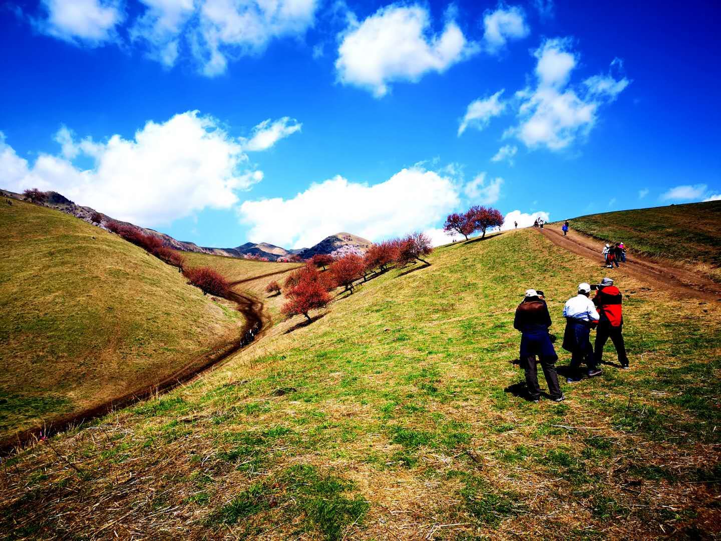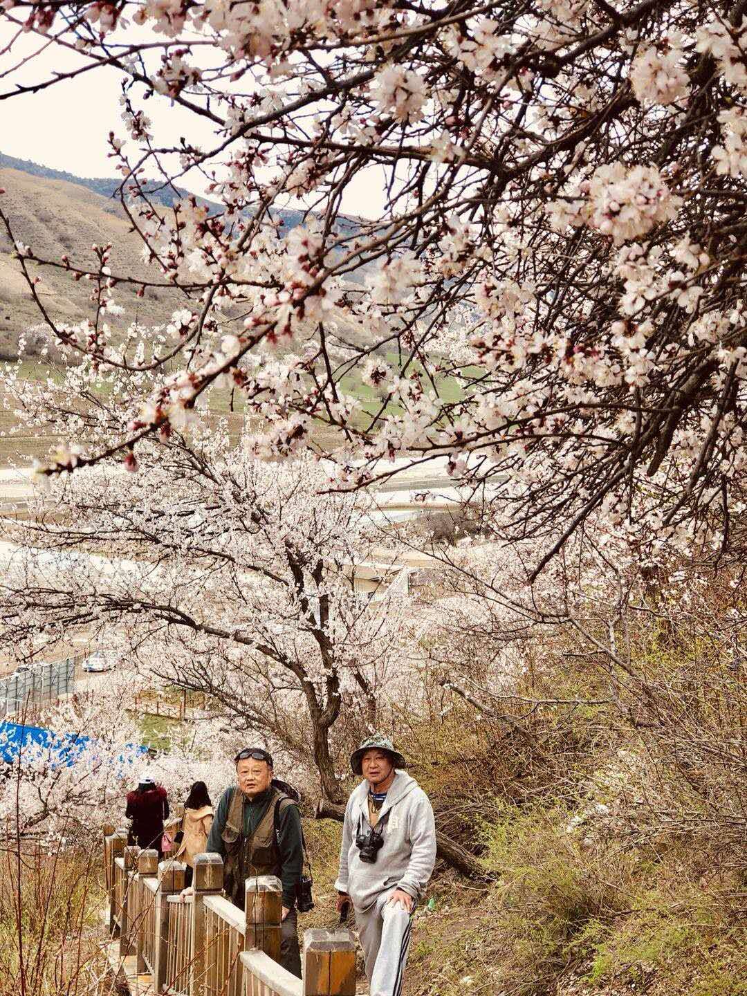 這沿途的杏花溝風(fēng)景已經(jīng)美不勝收了。北山坡在初綠的背景下,被鮮嫩的、淡淡的粉色所渲染,有大氣磅礴的場(chǎng)面。牧笛聲聲里的杏花村。