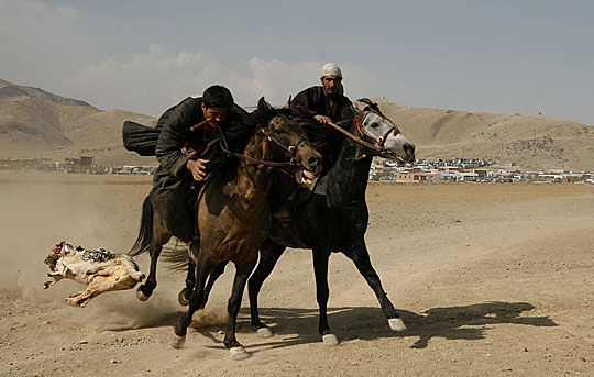 車行至喀什地區(qū)塔什庫爾干塔吉克自治縣提孜那甫鄉(xiāng)附近,有些驢友好像發(fā)現(xiàn)了什么,開始躁動。忽然有人說好像是叼羊。領(lǐng)隊小蘇大叫了起來,“叼羊!叼羊!大家趕快下車拍叼羊,停車半個小時?!贝蠹乙桓C蜂似的沖下大巴,跳過路邊的小溝,奔向幾百米外的村莊。