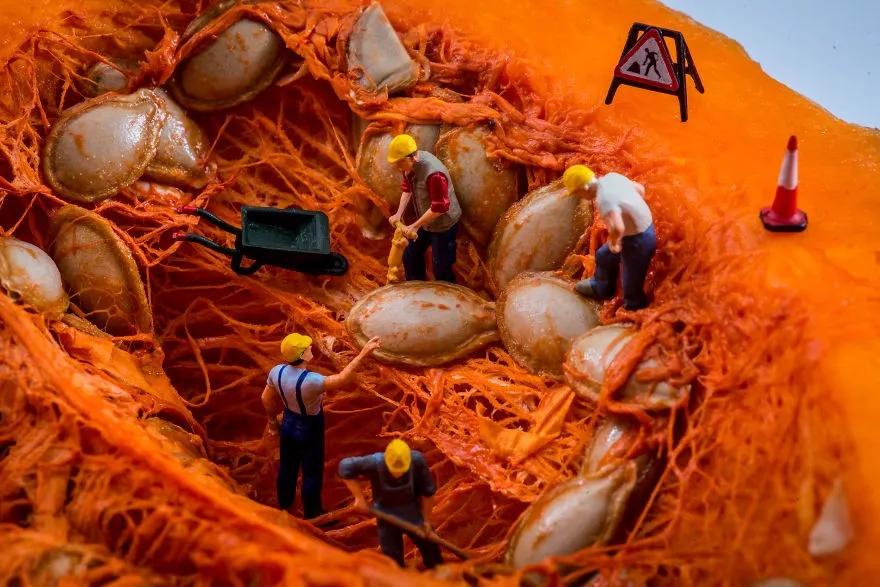 來(lái)自匈牙利布達(dá)佩斯的美食攝影師彼得近三年改變了以往的攝影風(fēng)格,他利用微縮模型、食物和日常用品搭配組合,創(chuàng)造了一個(gè)名為“Tiny Wasteland”(袖珍荒原)的攝影系列。