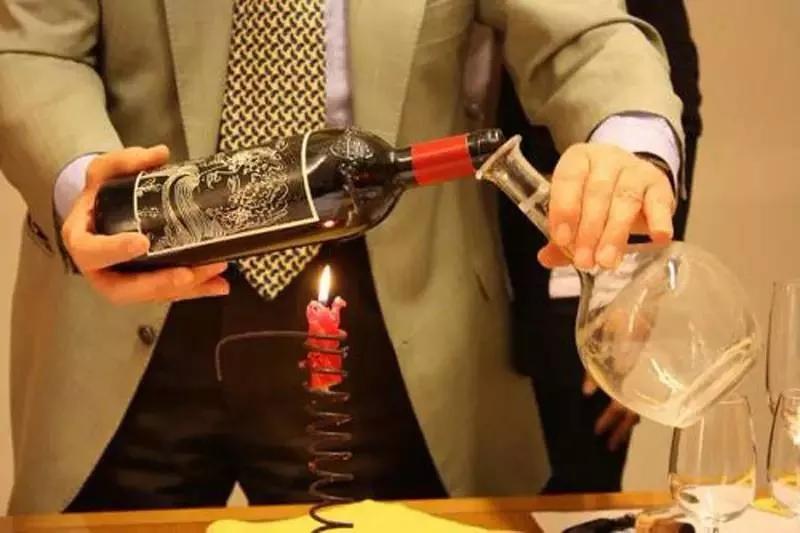 在傳統(tǒng)的侍酒服務(wù)中,開瓶時(shí)需要在酒瓶下方點(diǎn)燃一根蠟燭,選擇合適透亮的角度,在燭光前緩緩將酒液倒入醒酒器中,直到看見沉淀流動(dòng)到瓶頸處停止。