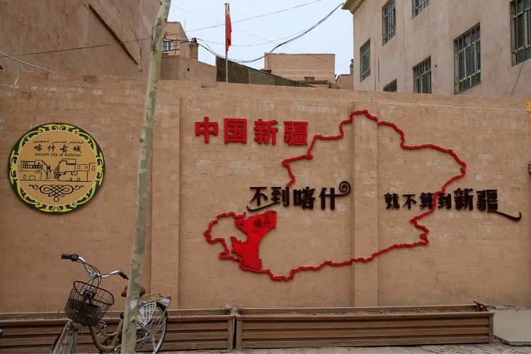 的確,到喀什首先映入我們眼簾的就是這么一副宣傳墻畫?!安坏娇κ?,就不算到新疆”。真是夠牛的?。?/span>