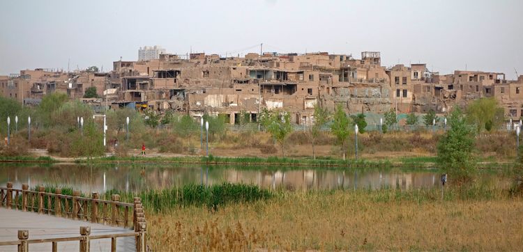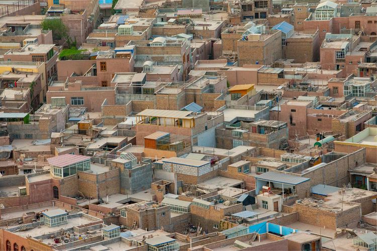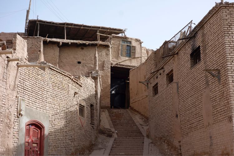 高臺民居是喀什市老城東北端一處建于黃土高崖上的維吾爾民族聚居區(qū),距今已有600年歷史??κ驳木S吾爾族人世代聚居,房屋依崖而建,家族人口增多一代,便在祖輩的房上加蓋一層樓,一代一代,房連房,樓連樓,層層疊疊,這些房大多是土房,也有不少新建的磚房。