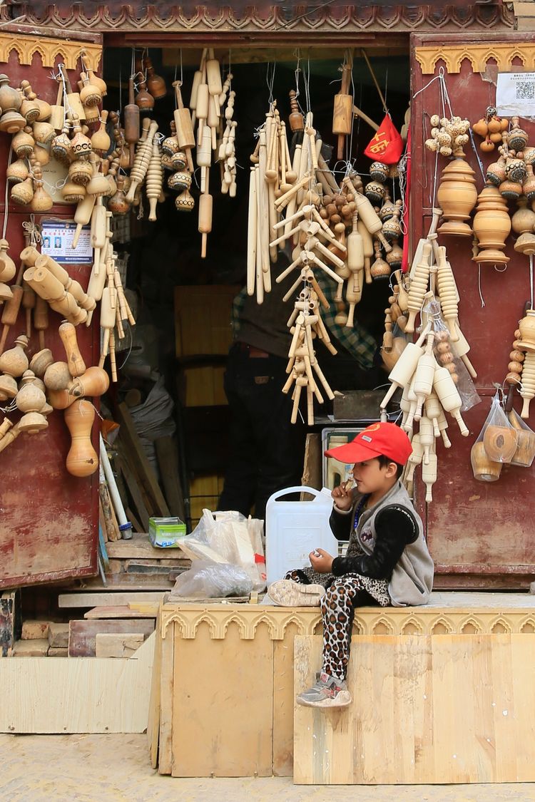 我們一行來到喀什,紛紛被這里濃郁的民族風情所吸引,幾天內(nèi)多次深入到古城內(nèi)拍攝。一手抓相機,一手掂著烤馕,好酷啊。