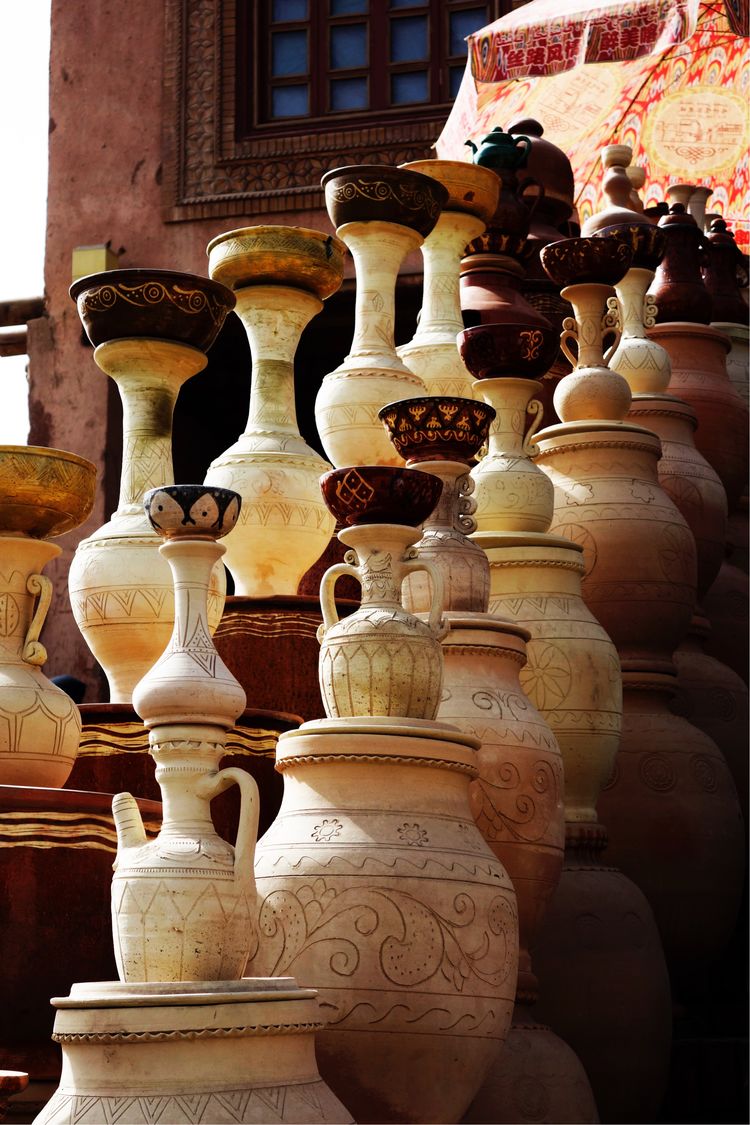 一件件具有維吾爾族風格的陶瓷制品強烈吸引著我,可惜無法帶回家來。