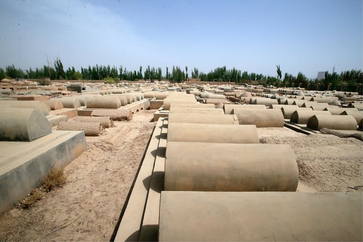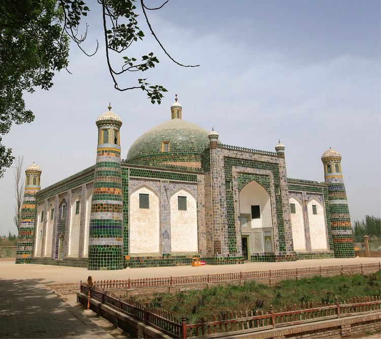 香妃墓,坐落在喀什市東郊的浩罕村,系自治區(qū)的重點文物保護單位。這是一座典型的伊斯蘭古建筑群,也是伊斯蘭教圣裔的陵墓,占地2公頃。 據(jù)說墓內(nèi)葬有同一家族的五代72人。第一代是伊斯蘭著名傳教士玉素甫霍加。他死后葬于此。 傳說,埋葬在這里的后裔中,有一個叫伊帕爾汗的女子,是乾隆皇帝的愛妃,由于她身上有一股常有的沙棗花香,人們便稱她為“香妃”。香妃死后由其嫂將尸體護送回喀什,并葬于此墓內(nèi),因而人們又將這座陵墓稱作“香妃墓”。不過據(jù)考證,香妃并沒有葬在這里,她確切的葬地在河北遵化清東陵的裕妃園寢。
