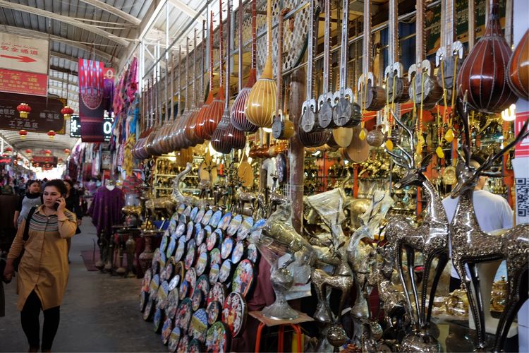 喀什內(nèi)的巴扎規(guī)模巨大,各種各樣的商品琳瑯滿目,無所不有。