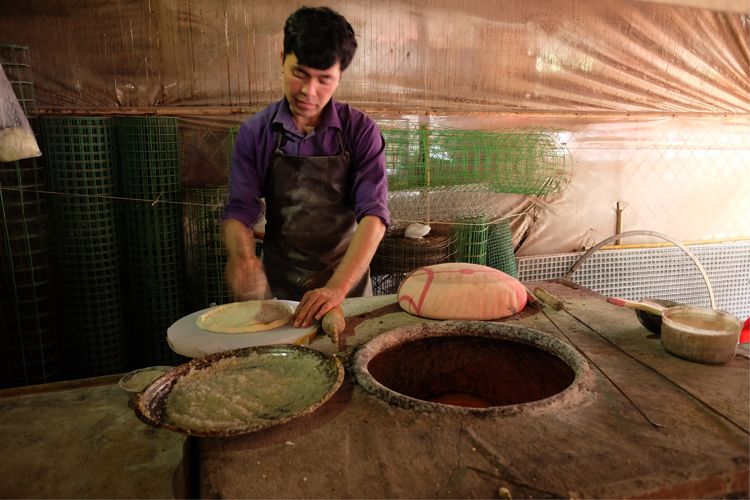 烤馕是喀什維吾爾族最主要的面食,也是維吾爾族飲食文化中別具特色的一種食品,喀什人民常說“可以一日無菜,但決不可以一日無馕。”