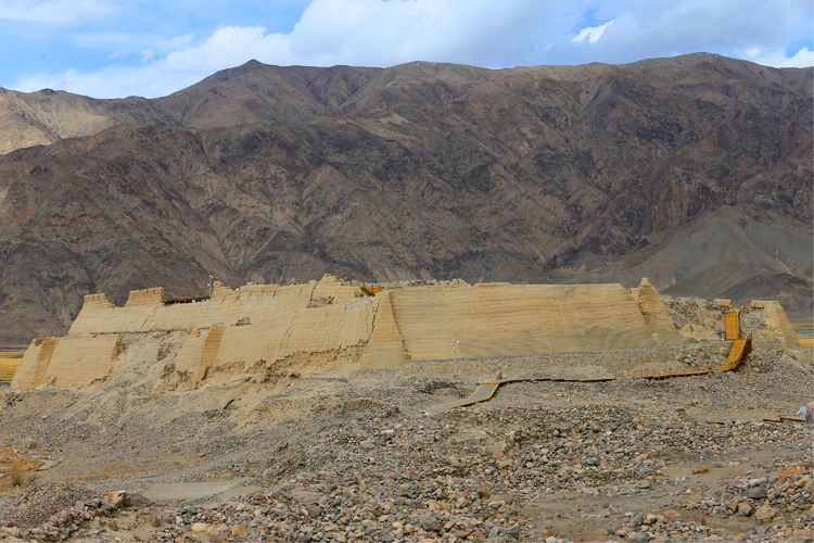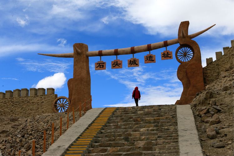 石頭城遺址 海拔3100米,為晉唐時期的城墻、城門、寺院,居住遺址和清代官署等遺跡。城墻用石塊或土坯砌筑。城墻內(nèi)有一塊石碑刻有唐僧講經(jīng)處字樣。