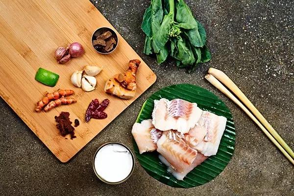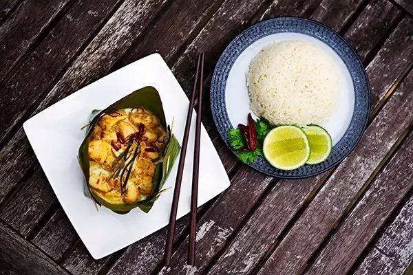 這道菜原本是古高棉人用來慶祝水節(jié)的美食,將肉類(魚、雞、豬、牛肉)裹在香蕉葉中烘烤,再加入椰汁、椰漿、高棉咖喱醬、檸檬葉和當?shù)厥卟?,上桌以后不僅顏值高,椰香魚香葉香渾然一體,口感綿密有點像咖喱。