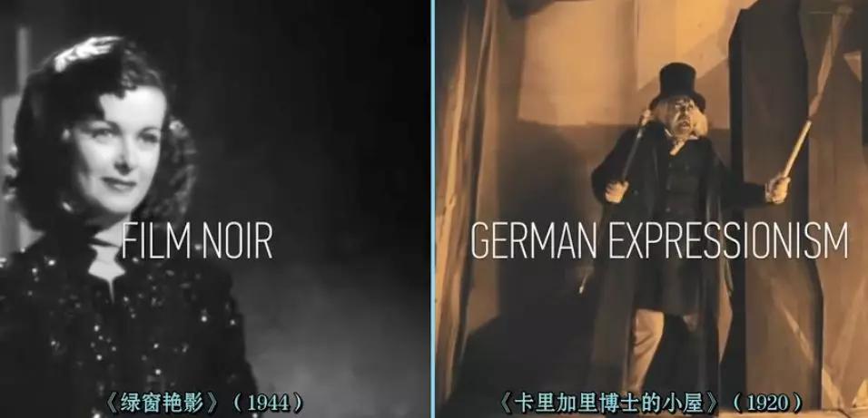 左:黑色電影 / 玄色影戲;右:德國(guó)表現(xiàn)主義