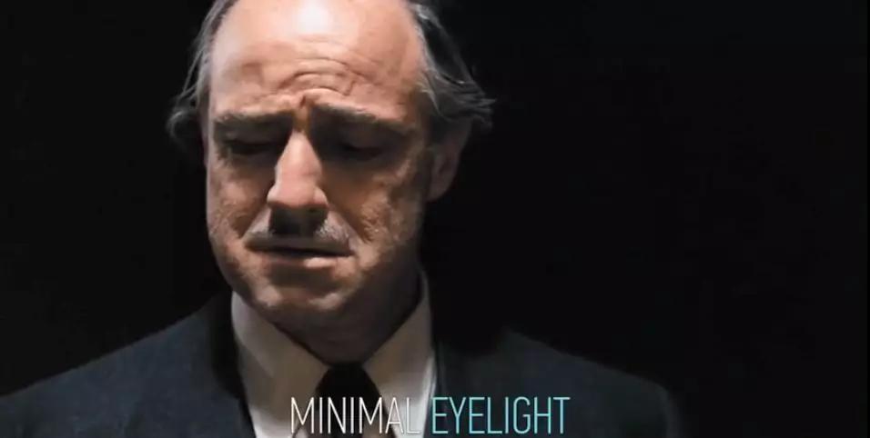出于對(duì)白蘭度特效妝容的強(qiáng)調(diào),威利斯從他的上方打光,經(jīng)常提供最小程度的眼部打光(Eyelight)。