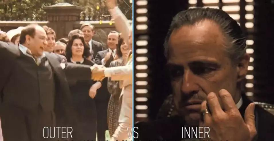 這樣的處理手法在視覺(jué)上強(qiáng)調(diào)了遜尼做事過(guò)于光明磊落,他沒(méi)有維托和邁克所展現(xiàn)出的那種精神生活和內(nèi)在的黑暗。