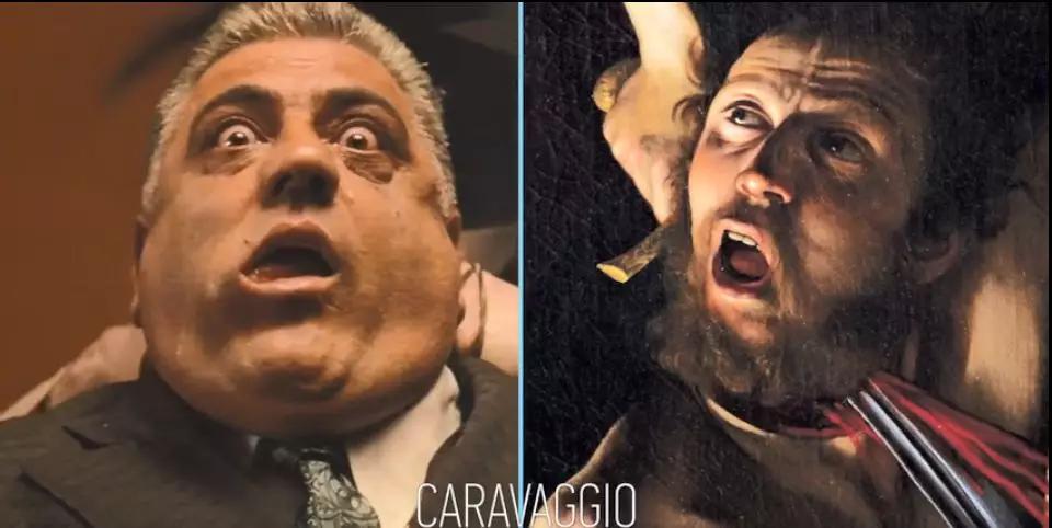 左:電影劇照;右:卡拉瓦喬畫(huà)作