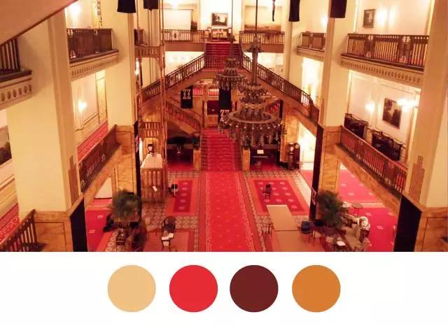 而大飯店大廳的營(yíng)造,則更是夢(mèng)幻。老歐洲的氛圍:咖啡色、洋紅、紅金、黃金,無(wú)論是裝修歐陸酒店還是懷舊咖啡館都可以參照這個(gè)。