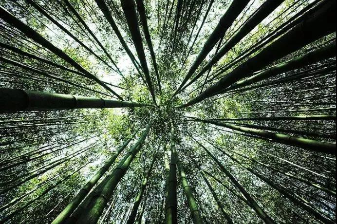 仰拍時,可以使用廣角鏡頭,將竹子凝聚在一起,產(chǎn)生緊湊感。