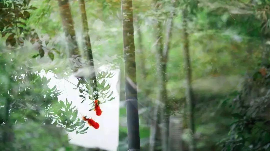 例圖中,是將水塘中的魚與竹林相疊加,既有了陪襯的魚,又多了水面的波光粼粼感,整個畫面變得更加有趣味。