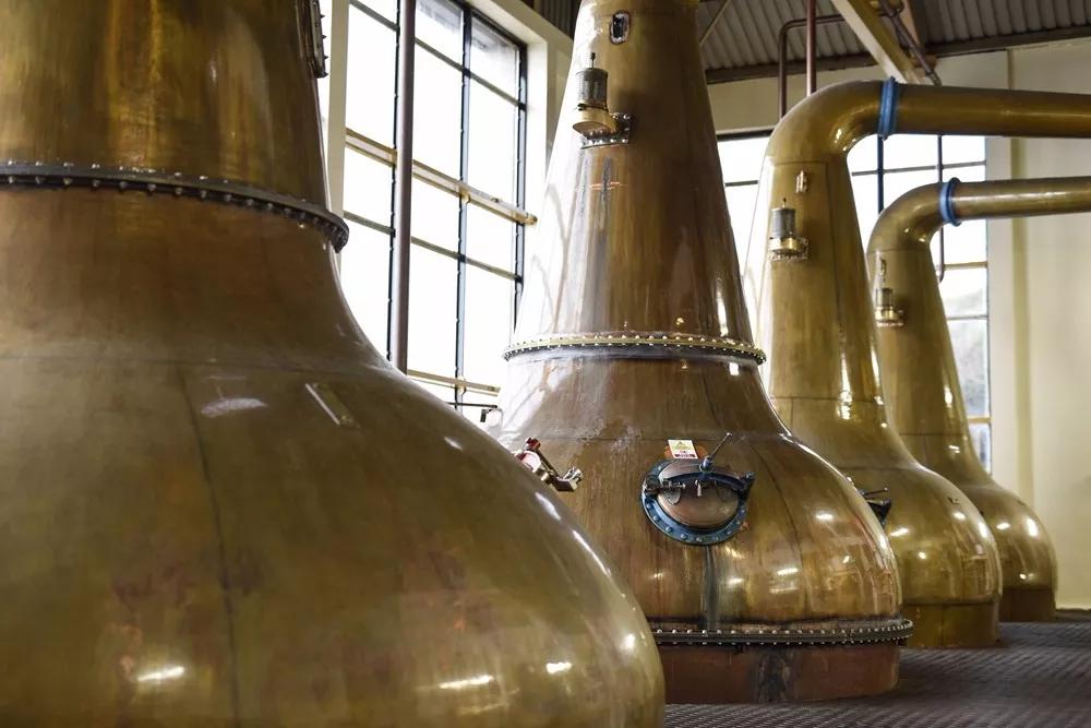 蒸餾是對發(fā)酵后的液體進行處理的下一步。某種程度上,那些巨大、直直佇立的銅制壺式蒸餾器,和緊密成排的橡木桶一起,搭載了人們對于威士忌不絕的想象。當我們在艾萊島依海而建的Caol Ila酒廠,看到那一整排落地窗前面海的蒸餾器時,突然就覺得它們像某種威士忌的守護神一般肅穆沉靜。