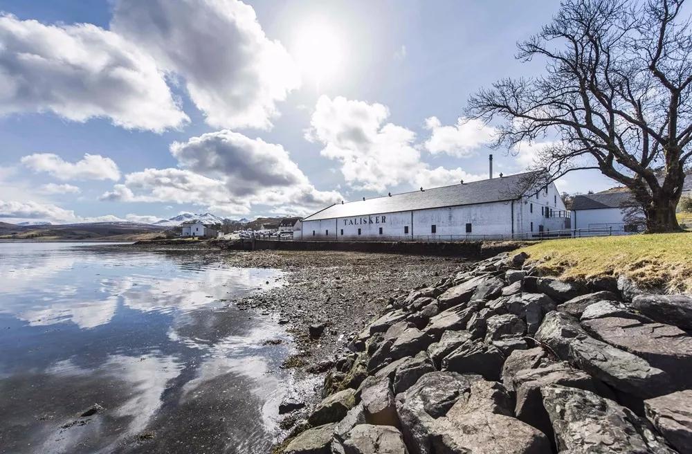 不同的酒廠在蒸餾方式上也有區(qū)別,比如位于我們路程中點線上的Talisker。它坐落在蘇格蘭最大的島嶼Skye島上,在酒廠外極目望去,水天之間空闊、遼遠。就算只是與對岸的群山相顧而行,也是一次無比舒爽的精神按摩。