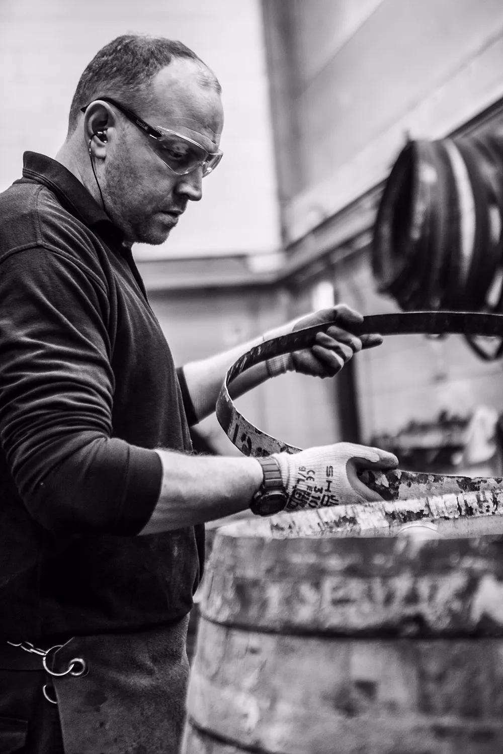 終于到了最關(guān)鍵的一步:液體進入橡木酒桶中開始陳年。要知道,橡木桶在威士忌風味的影響中至少占了6成。參觀Cambus制桶廠,成了這趟威士忌之旅中必不可少的一部分。