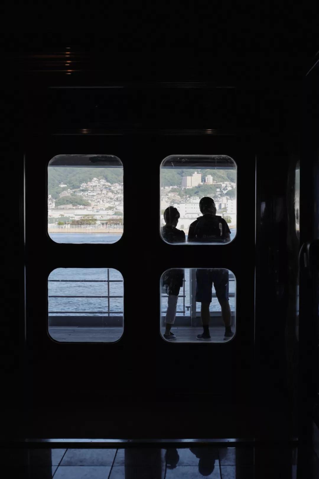 穿越漫長的走廊通道抵達(dá)房間,墨綠與橘黃的色彩搭配叫人心情明媚,從小巧的懸窗向外望,船只尚未起航,蒼茫的海水寧靜無波,而之后幾天,緩緩起伏的海浪會伴隨每一日黎明的惺忪睡眼與深沉的晚安。