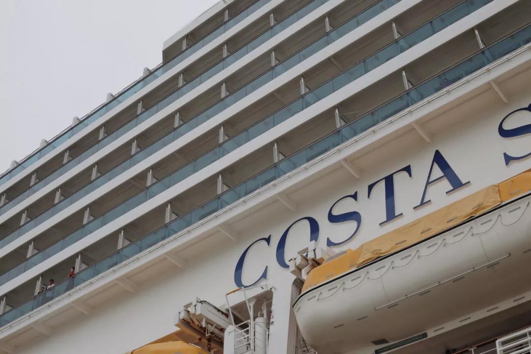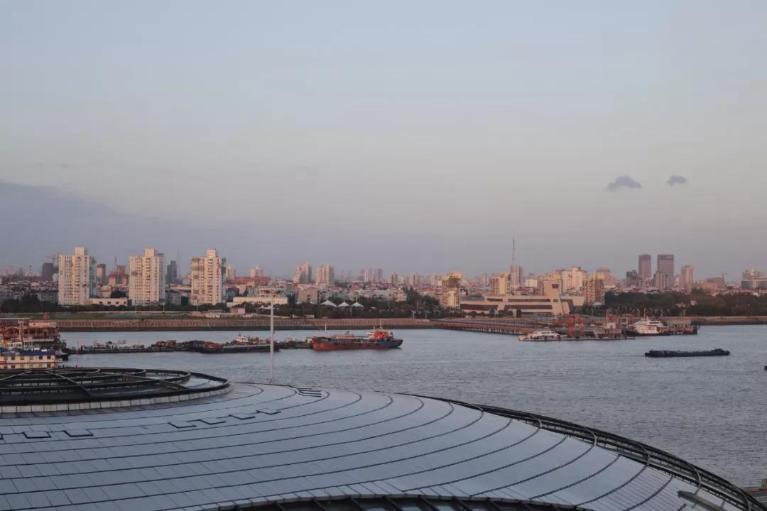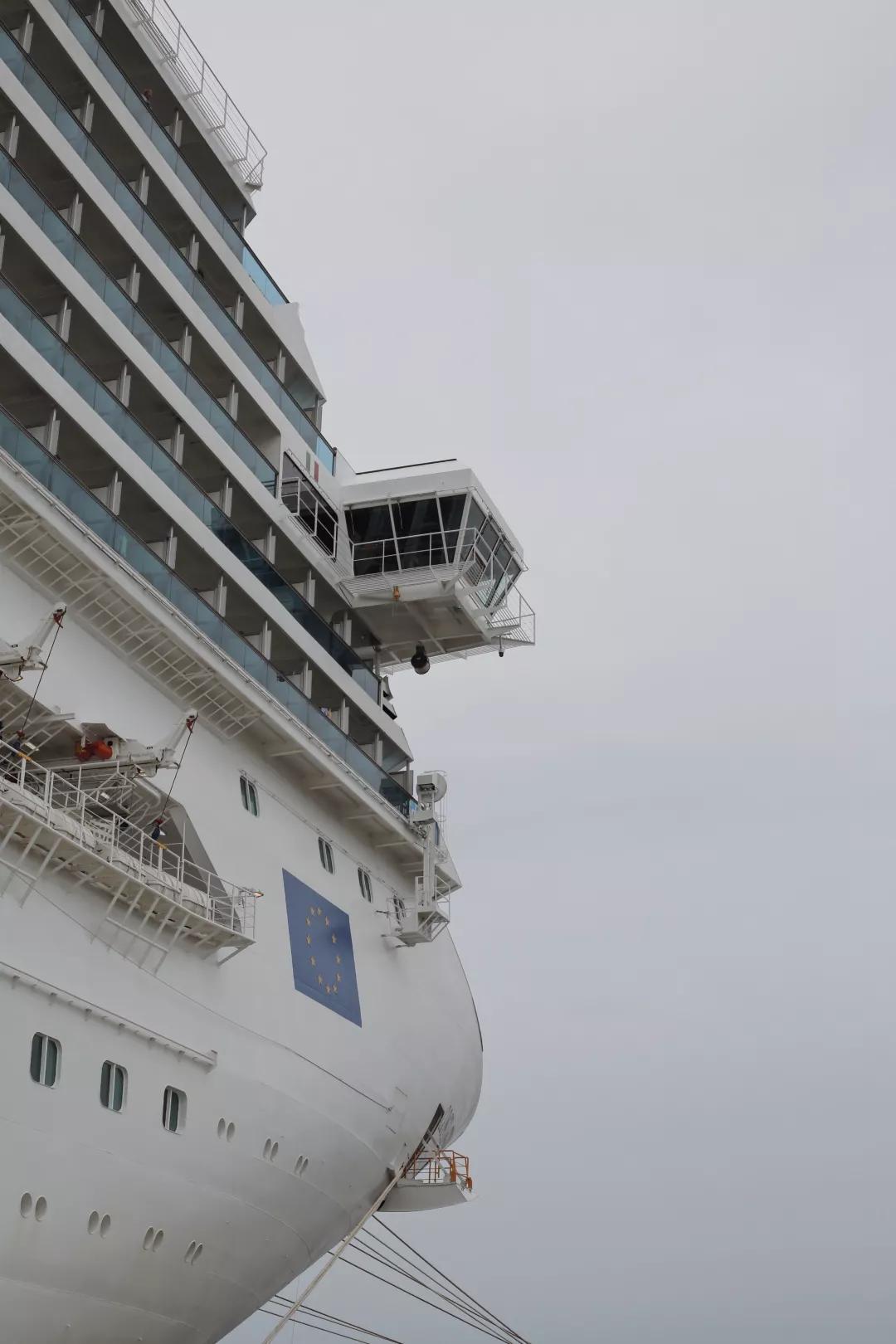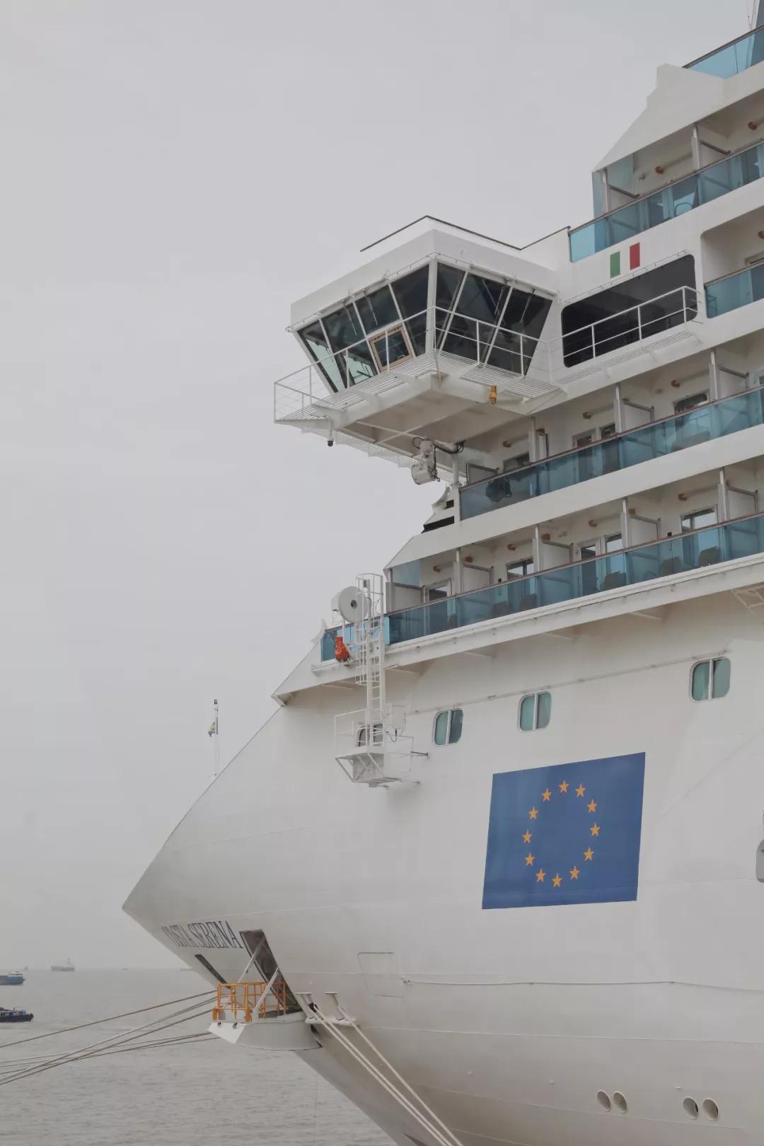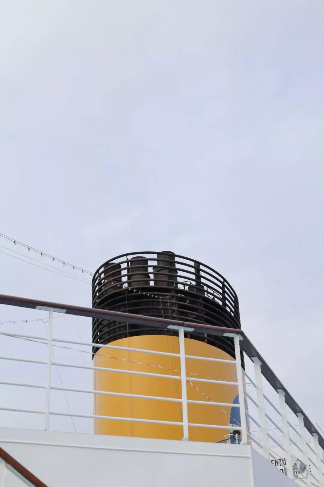 旅程第一天從上海吳淞口碼頭開始,賽琳娜號明黃色的煙囪在晴空下格外矚目。